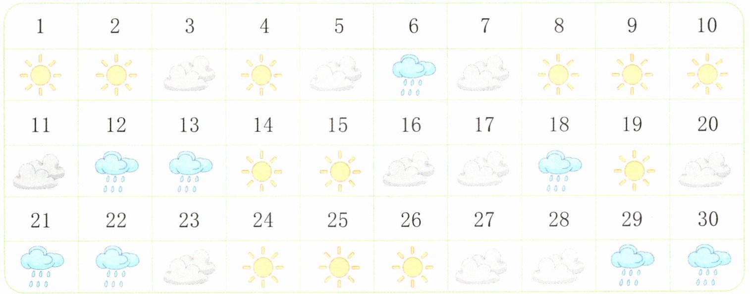 (3)从上表中可以看出,4月份( )的天数最多,( )的天数最少。