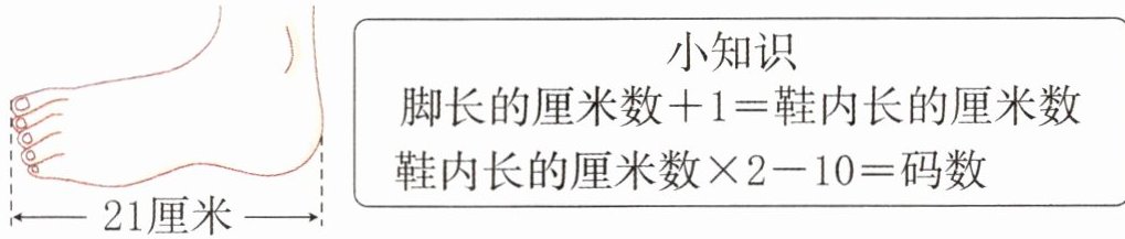 3. (山西·大同)张雄想买一双鞋,但不知道如何选鞋码。于是他上网查阅资料,并制作了一张小知识卡(如图)。他的脚长如图所示。
