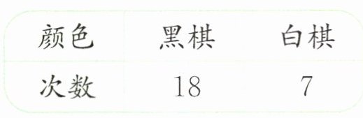 1.盒子里有黑、白2种颜色的棋子(除颜色外其余均相同),笑笑从这个盒子里任意摸出1颗棋子,摸后放回,一共摸了25次,每次摸出棋子的情况如表所示。