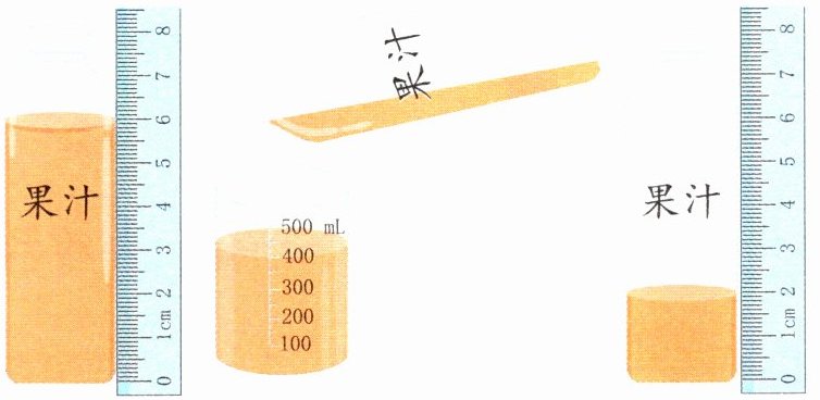 5. 妙妙用下面的方法测量,最终瓶里还剩多少毫升的果汁?