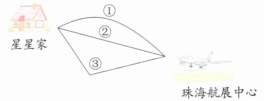 3. 星星一家开车去看航展,导航推荐了三条路线。最近的一条路线是(