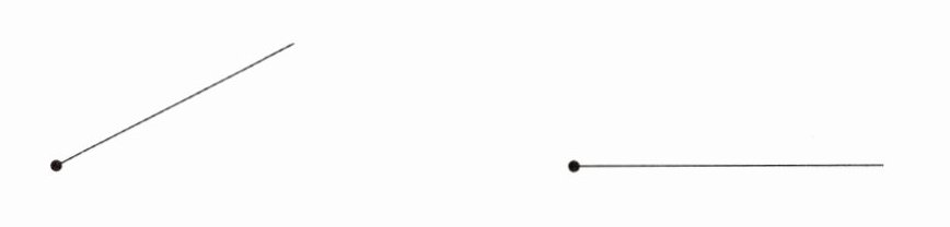 2. 以下面每条射线为一条边,分别画一个角,并标出各部分的名称。