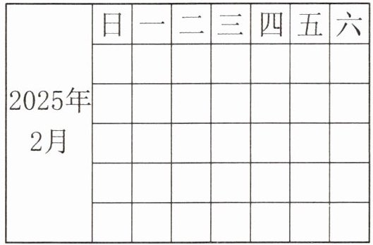 已知2025年2月最后一天是星期五,请先把月历填写完整,再完成填空。