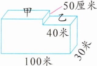 跟踪练习3 如图,有一块长方形地,甲处比乙处高50厘米。现在要把这块地推平整,使得甲、乙两处一样高,要从甲处推下多少厘米厚的土填在乙处?