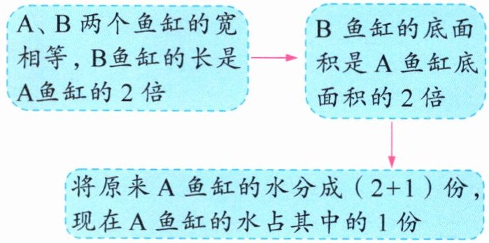 方法二是根据两个鱼缸底面积的倍数关系,将原来$A$鱼缸的水进行份数划分来计算现在的水深。