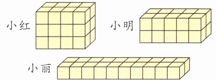 3. 下面是三名同学用同样大的小正方体木块摆成的三个不同的长方体。