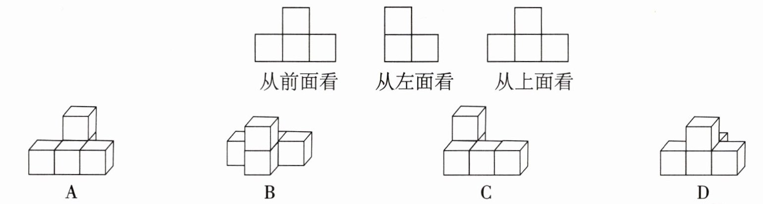 练2-1 如图是一些大小相同的小正方体搭成的几何体从三个方向看到的形状图,则这个几何体只能是(