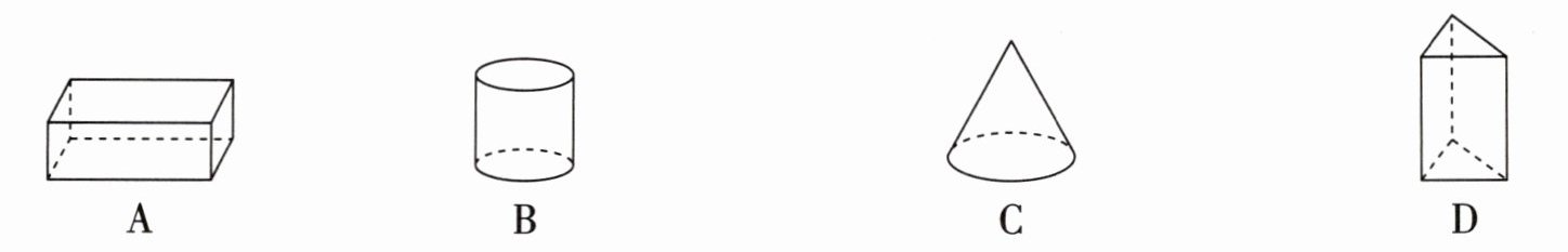 例2 下面立体图形中,无论从前面、左面还是上面看,都不能看到长方形的是(