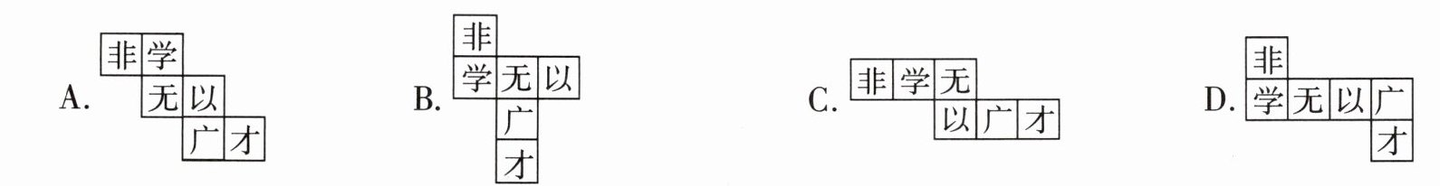 例3 “非学无以广才”,意思是不学习就难以增长才干,出自诸葛亮的《诫子书》. 将“非学无以广才”六个字分别写在一个正方体的六个面上,展开图如图所示,则“广”的对面是“非”的展开图是(
