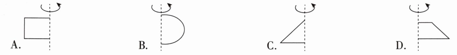 2.在下列图形中,以直线为轴将平面图形旋转一周,可以得出圆柱体的是(