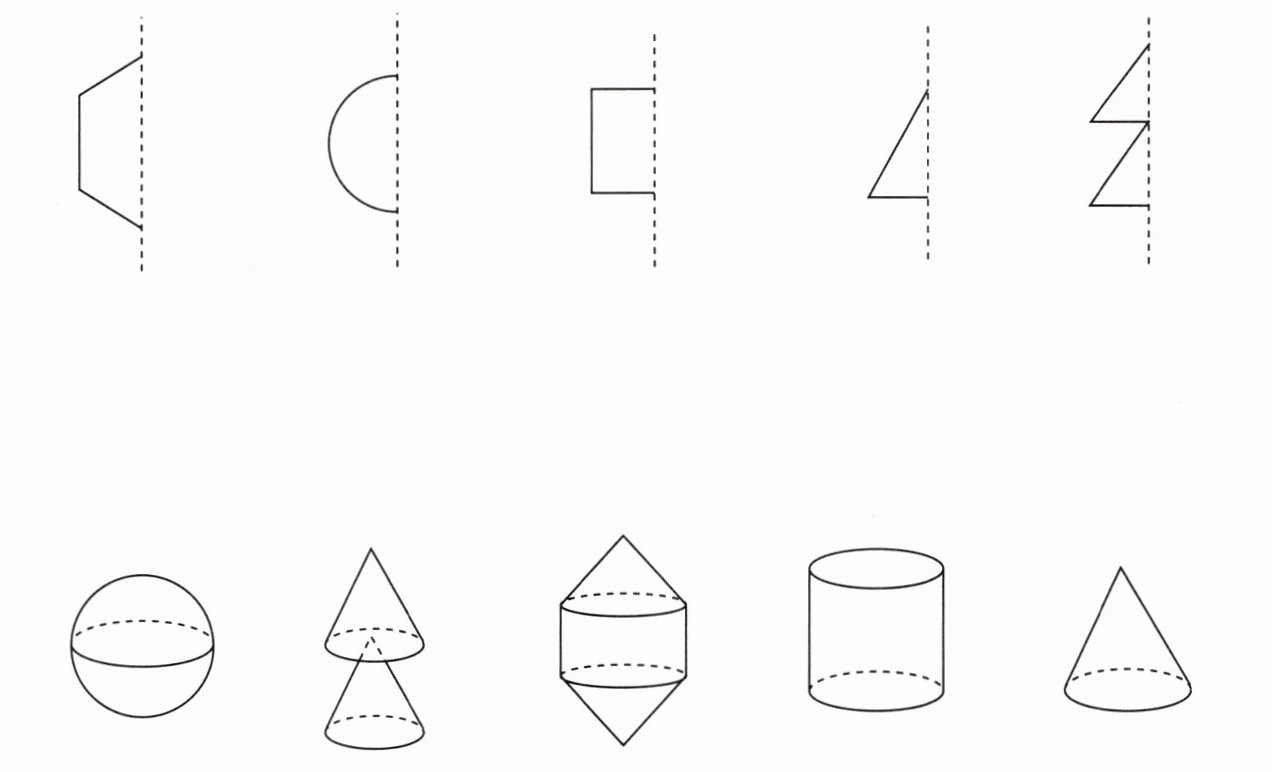 6.如图,第一行的图形绕虚线旋转一周,能形成第二行的哪个几何体?用线连起来.