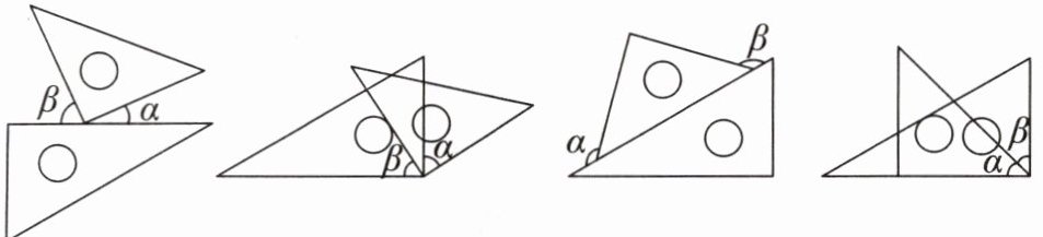 练2-1 如图,将一副三角尺按不同的位置摆放,$∠α与∠β$相等的情况有(