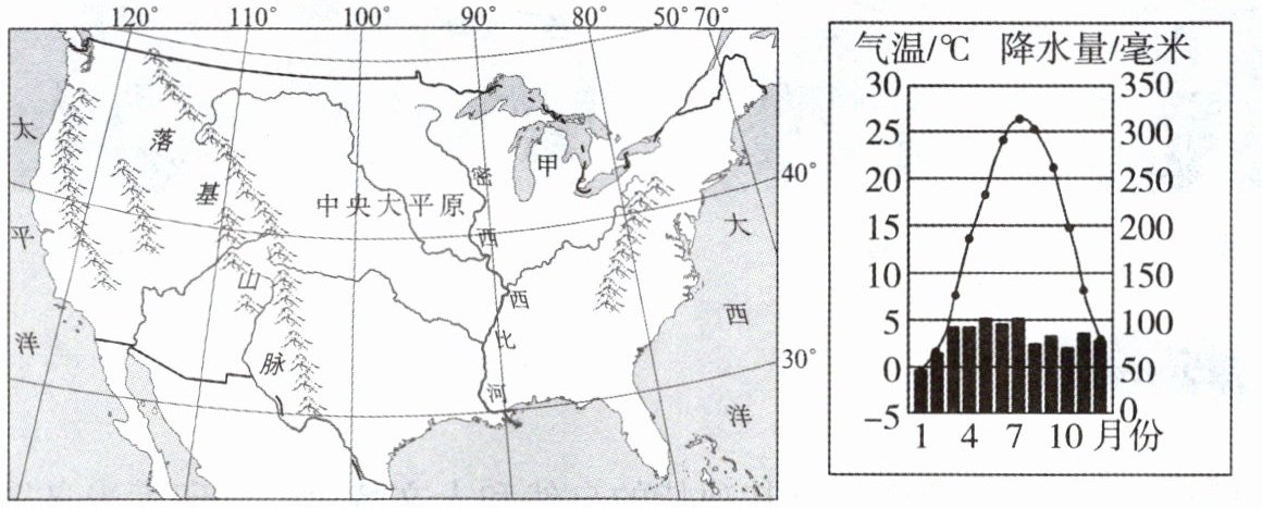 河和五大湖可提供充足的灌溉水源。(2)地形呈南北纵列分布,