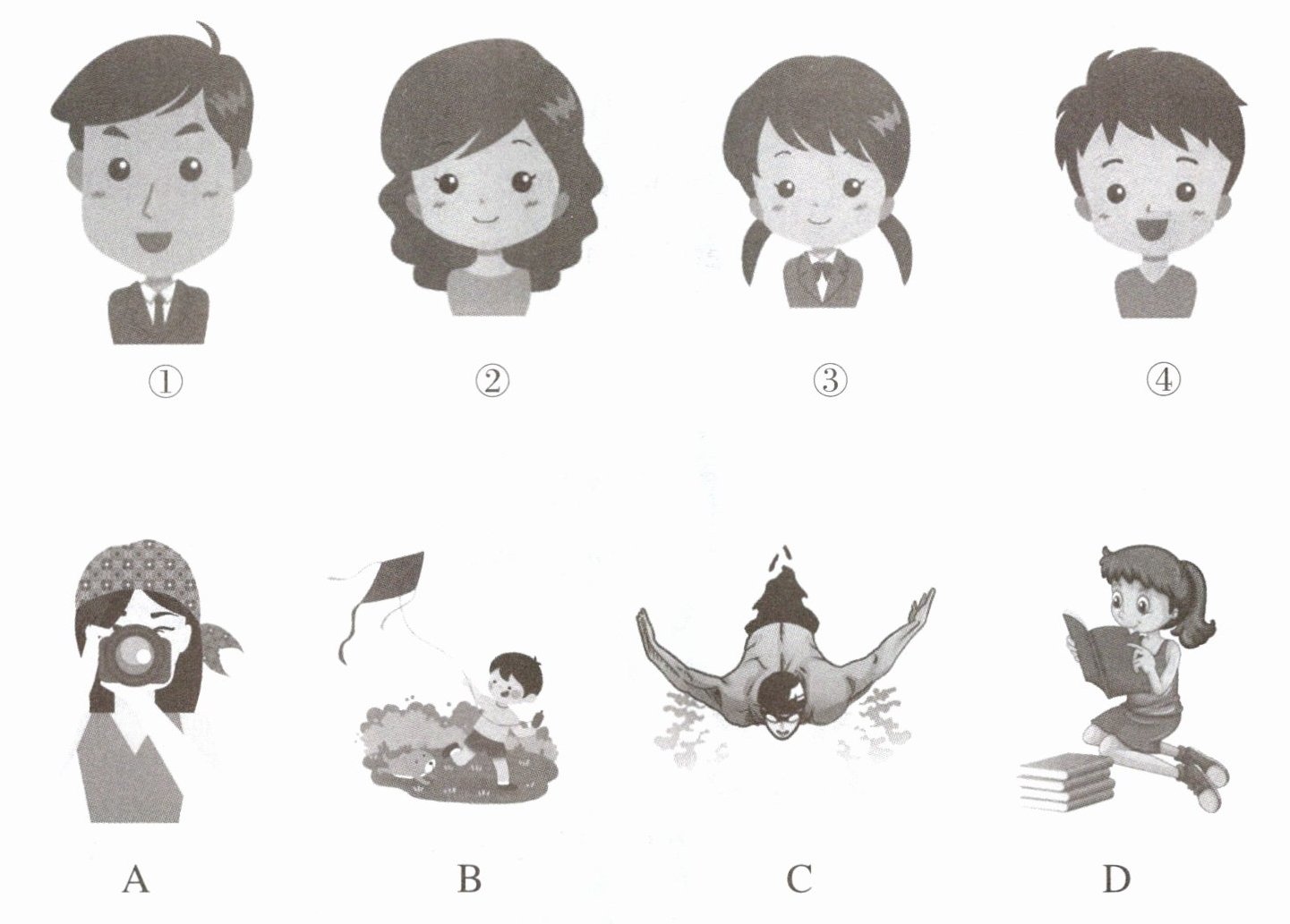 Ⅰ.同学们,你们一定有自己喜欢做的事情吧!请认真阅读下面的小短文,然后根据短文内容,将下页图中的人物和活动连起来吧。