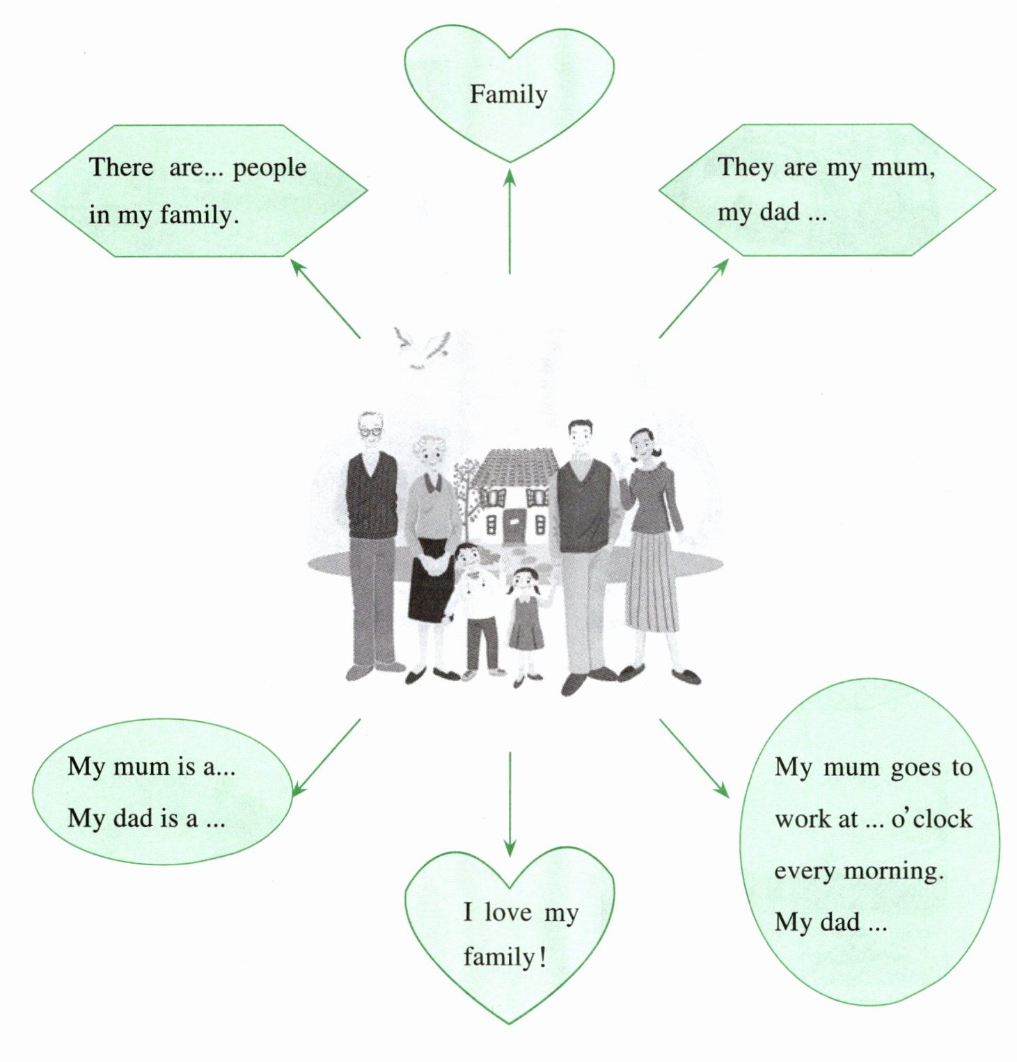 There are six people in my family. They are my grandpa, my grandma, my dad, my mum, my sister and me. My mum is a teacher. My dad is a doctor. My mum goes to work at seven o'clock every morning. My dad goes to work at half past seven every morning. I love my family!