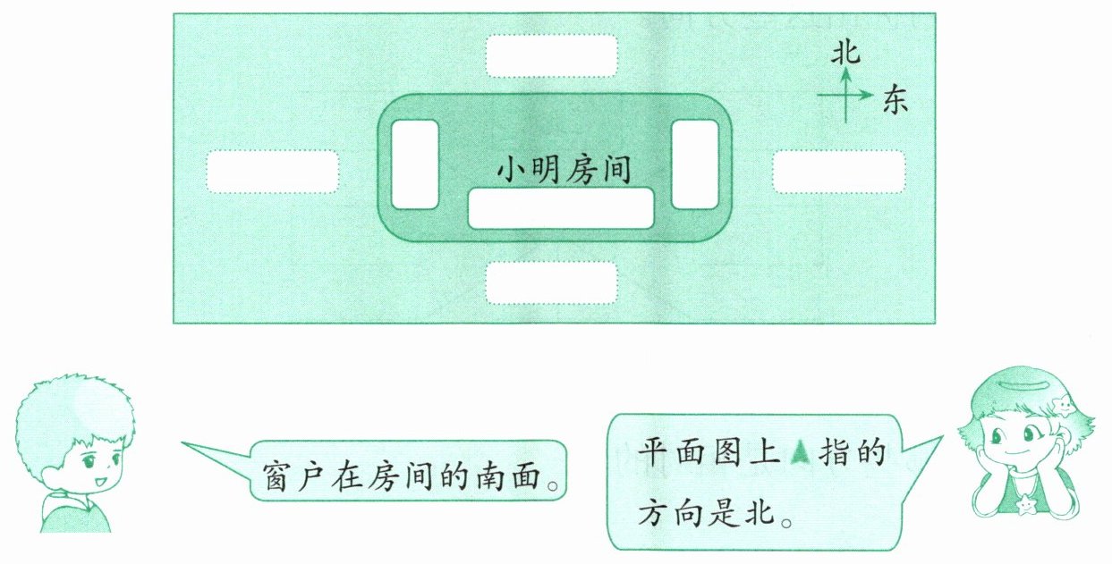5. 闭上眼想一想,若你站在小明房间的中间,面朝窗户,你的前、后、左、右分别是东、南、西、北中的哪个方向?