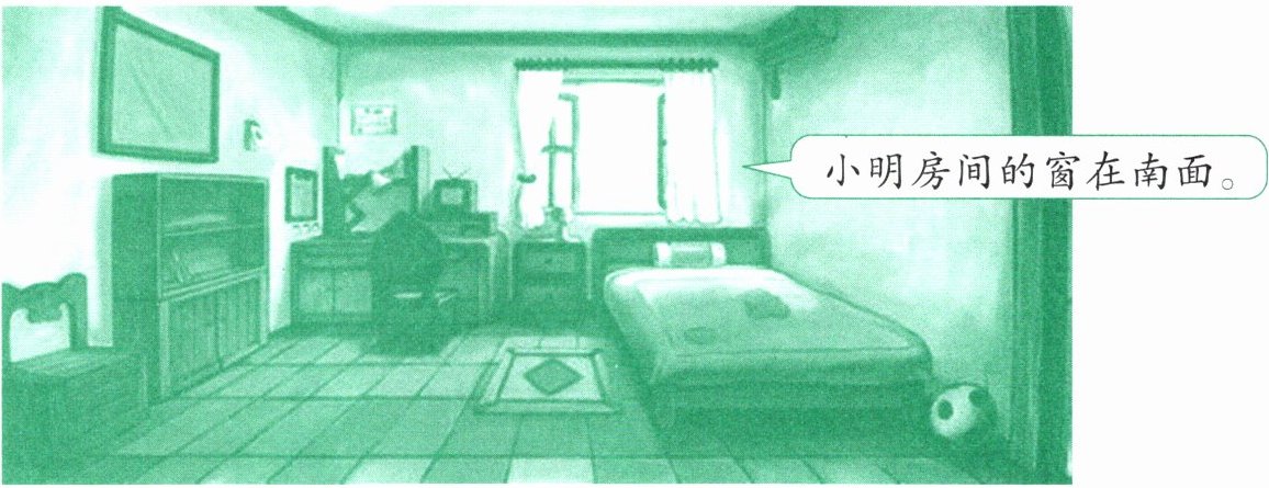 现实生活中,我们经常用东南西北表示方位,确定位置。下图是小明的房间,请结合图片解答问题。