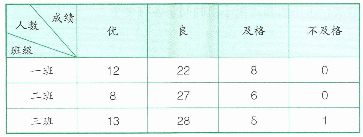 1. 玉华小学三年级共有3个班,3个班的体育成绩统计结果如下。