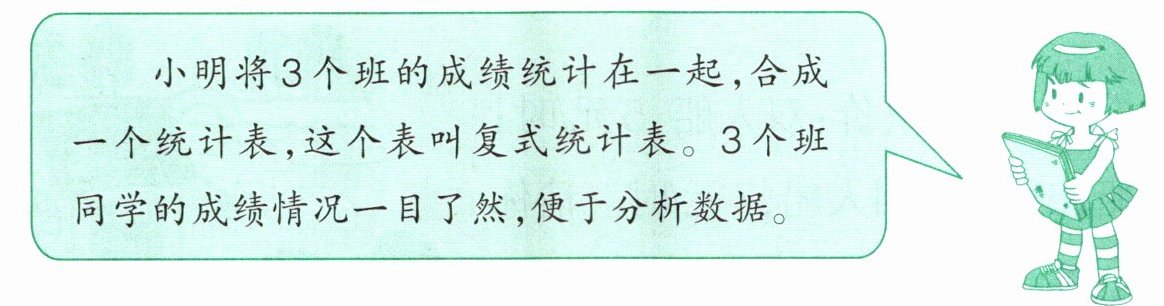 (3) 可以将3个班的成绩统计表合成一个表,想一想,怎样合呢?画一画。