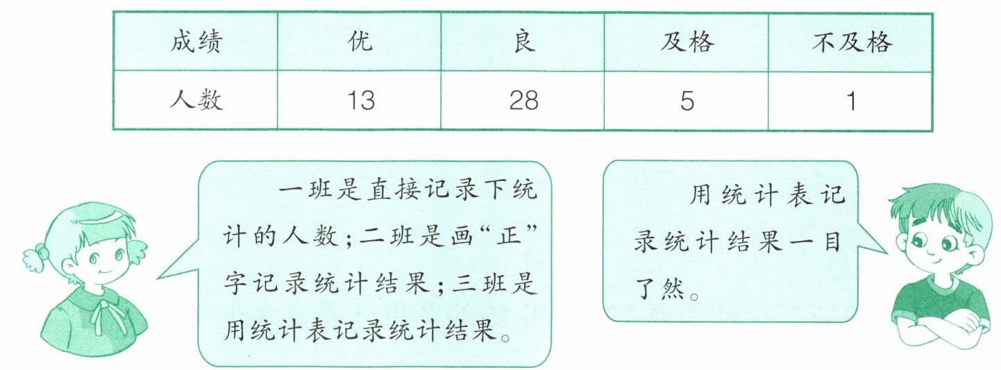 二班:优:正丅,良:正正正正正丅,及格:正一,不及格:无。