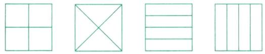 2. 一块面积是64平方米的正方形菜地,将它平均分成4块,在这4块地上分别种香菜、菠菜、小白菜、芹菜。