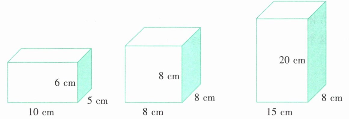 $10×5×6=300(cm^{3}),8×8×8=512(cm^{3}),15×8×20=2400(cm^{3})$
