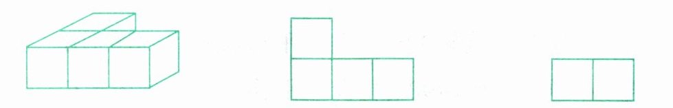 【解析】:通过观察立体图形,从正面看可以看到有上下两层,下面一层有三个正方形,上面一层有一个正方形在左边,符合第二个图形;从上面看可以看到有前后两排,前排有两个正方形,符合第三个图形。
