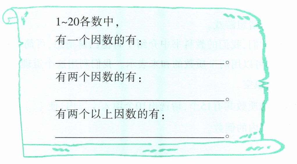 有一个因数的有:1 有两个因数的有:2,3,5,7,11,13,17,19 有两个以上因数的有:4,6,8,9,10,12,14,15,16,18,20 只有 1 和它本身两个因数的数 除了 1 和它本身还有别的因数的数 1