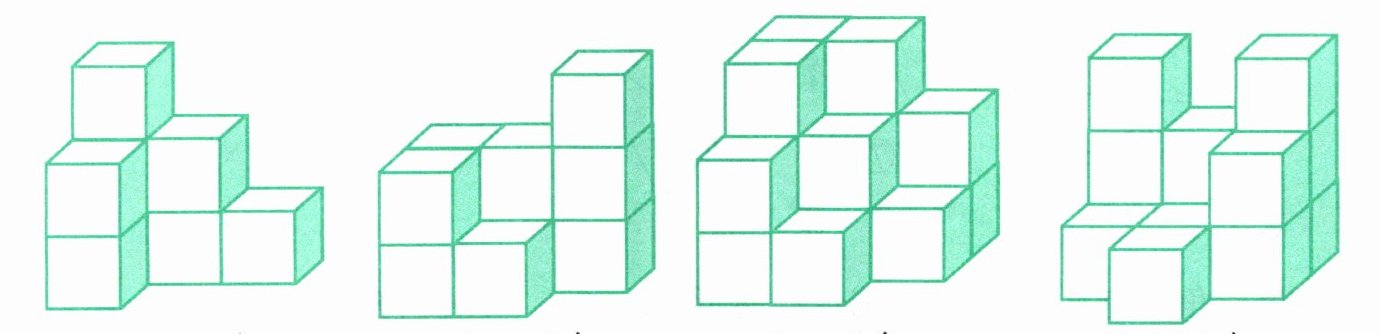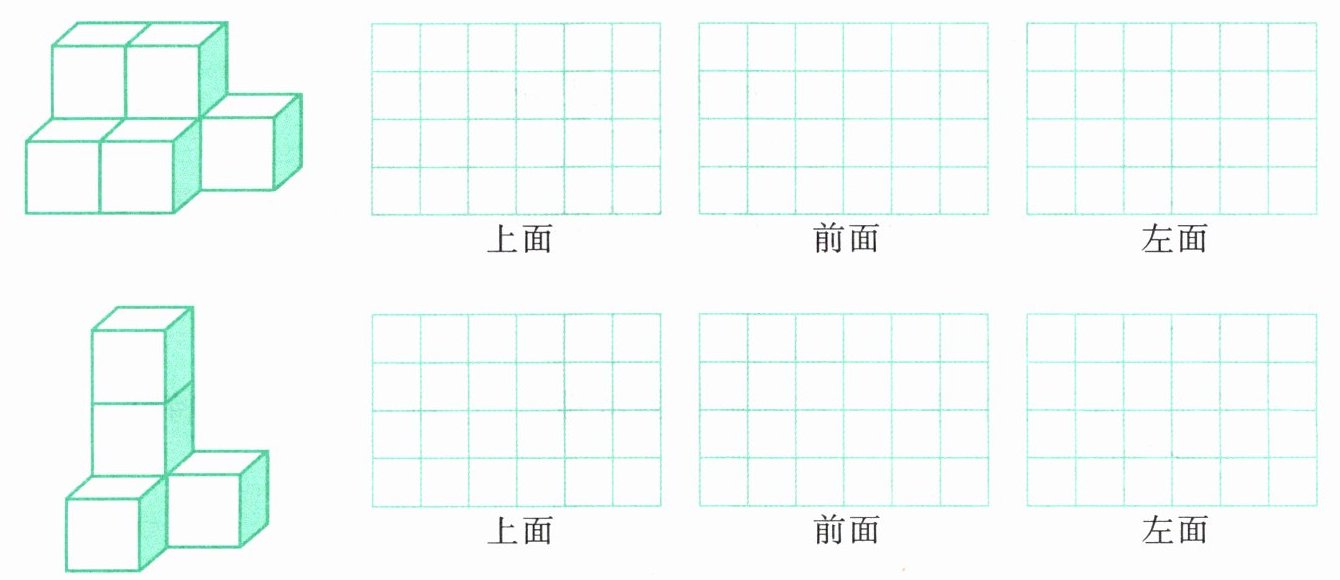 8.下面立体图形从上面、前面和左面看到的形状分别是什么?画一画。