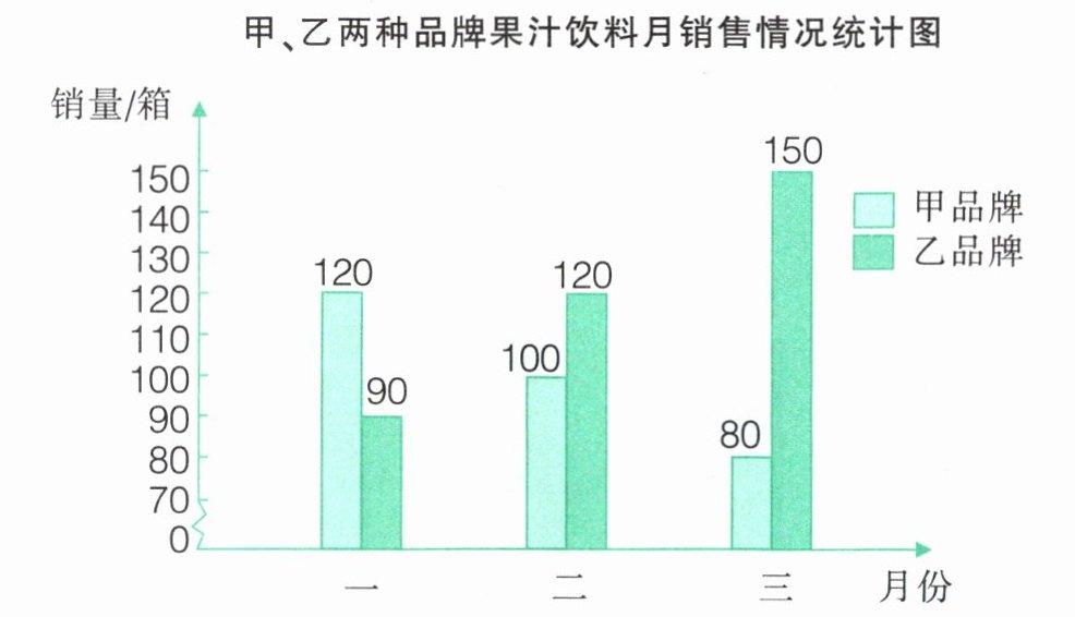 5. 下图是甲、乙两种品牌果汁饮料月销售情况统计图。
