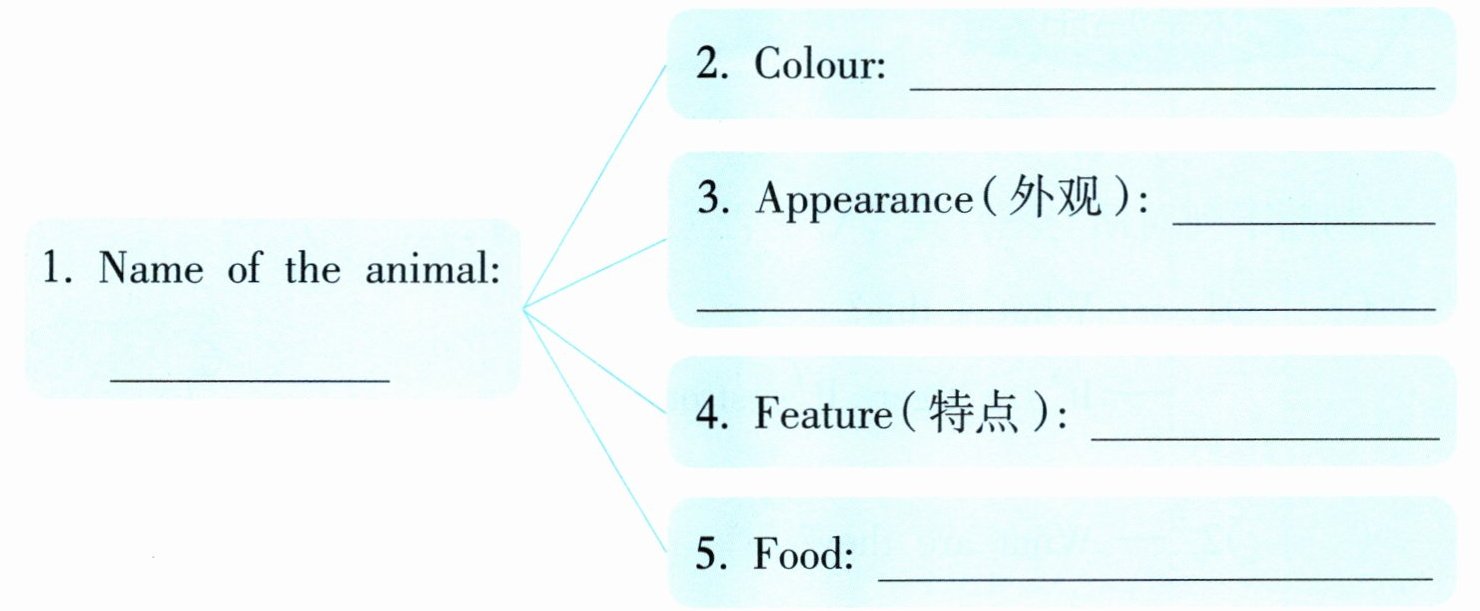 二、Read and choose. 英语课上, 同学们正在玩 “猜动物” 的游戏。请你读一读, 猜猜下面的句子分别描述的是哪种动物, 把序号填在括号里。