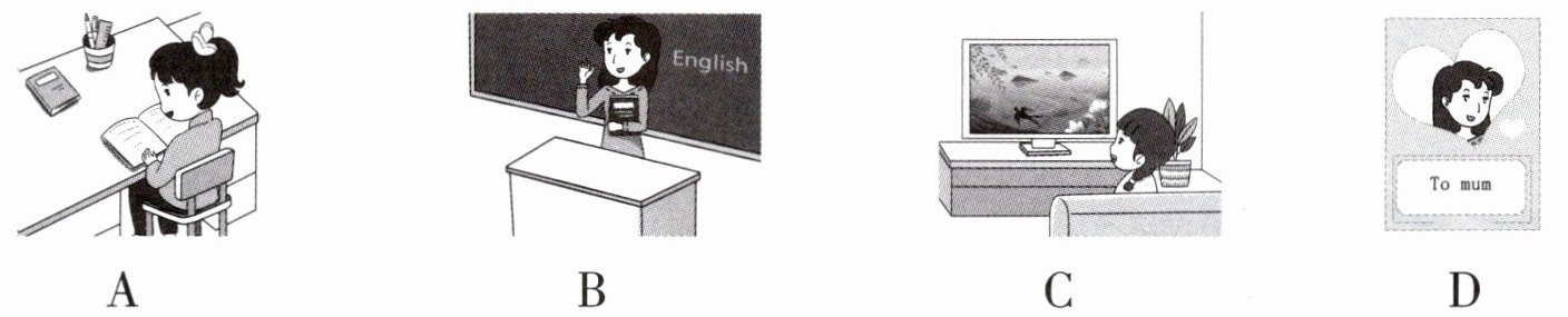 二、Read and choose. 英语课上, 同学们在练习对话。请你读一读, 为下列对话配上合适的图片, 把序号填在括号里。