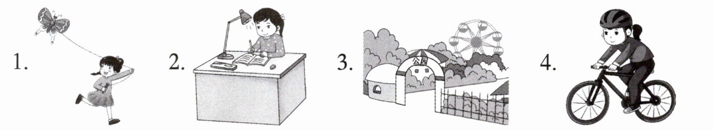 二、Look and choose. Li Ming 邀请你玩句子和图片“对对碰”的游戏。请你看一看,给下列图片选择相符的句子。