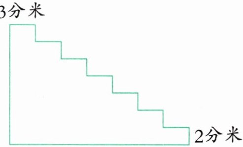 3. 如图是一个楼梯的侧面图,每个台阶的宽度都是3分米,高都是2分米。这个楼梯的侧面周长是