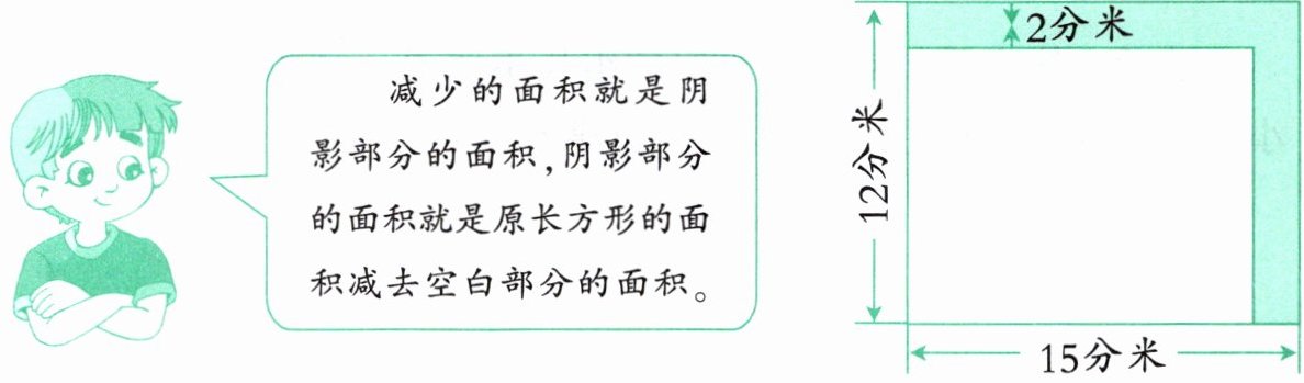 减少的面积就是阴影部分的面积,阴影部分的面积就是原长方形的面积减去空白部分的面积。