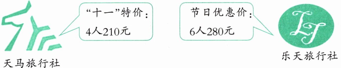 210÷4=52……2 280÷6=46……4 52>46 选择乐天旅行社。