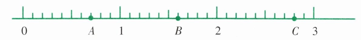 8. 在下图中标出0.2,1.3,2.4,并写出A,B,C表示的小数。