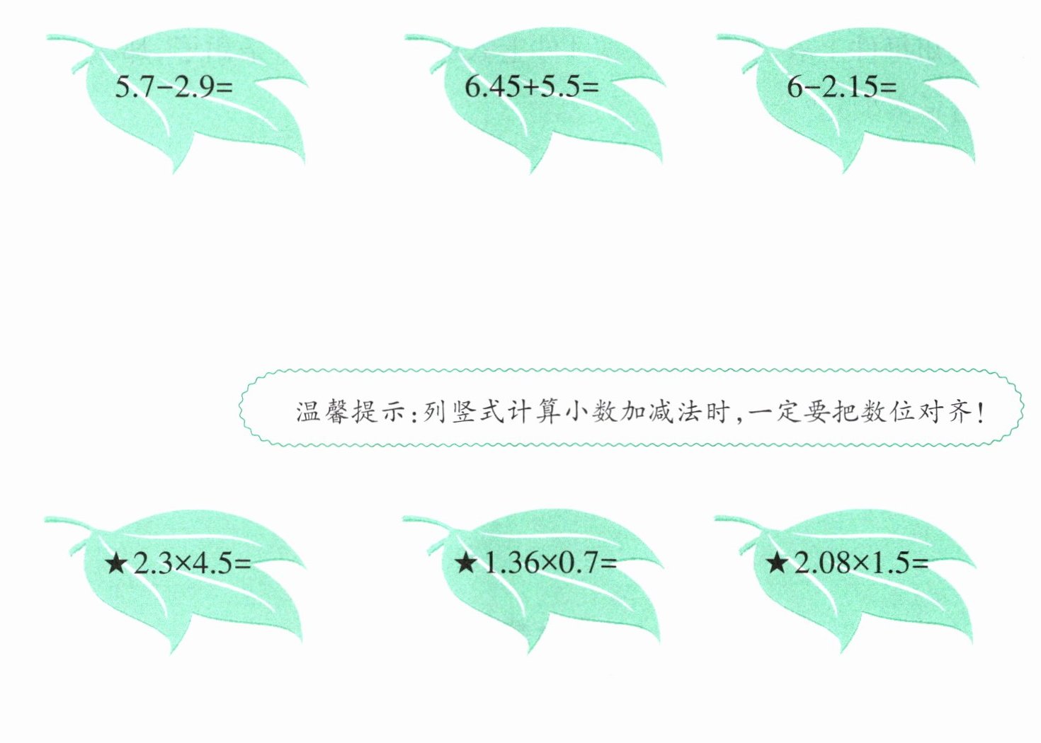 温馨提示:列竖式计算小数加减法时,一定要把数位对齐!