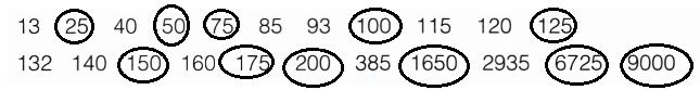 【答案】:1025、1050、1075、1100、1125、1150、1175、1200、1225、1250