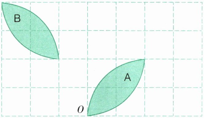 答案合理即可,如:将图A绕点O逆时针旋转90°,将得到的图形向上平移2格,再将得到的图形向左平移1格就得到图B。