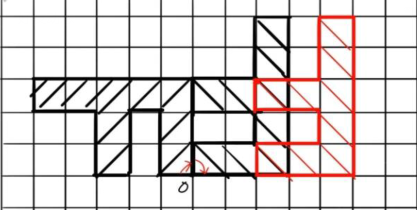 (2) 再将(1)得到的图形向右平移2格,画出平移后的图形。