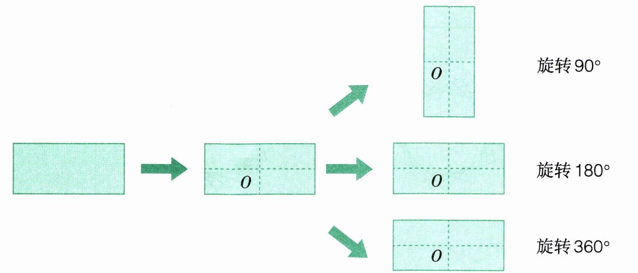 【答案】:长方形绕点$O$旋转$90^{\circ}$、$180^{\circ}$、$360^{\circ}$后都能与原来的图形重合。