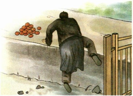 我说道:“爸爸,你走吧。”他往车外看了看说:“我买几个橘子去。你就在此地,不要走动。”我看那边月台的栅栏外有几个卖东西的等着顾客。走到那边月台,须穿过铁道,须跳下去又爬上去。父亲是一个胖子,走过去自然要费事些。我本来要去的,他不肯,只好让他去。我看见他戴着黑布小帽,穿着黑布大马褂,深青布棉袍,蹒跚地走到铁道边,慢慢探身下去,尚不大难。可是他穿过铁道,要爬上那边月台,就不容易了。他用两手攀着上面,两脚再向上缩;他肥胖的身子向左微倾,显出努力的样子,这时我看见他的背影,我的泪很快地流下来了。我赶紧拭干了泪。怕他看见,也怕别人看见。我再向外看时,他已抱了朱红的橘子往回走了。过铁道时,他先将橘子散放在地上,自己慢慢爬下,再抱起橘子走。到这边时,我赶紧去搀他。他和我走到车上,将橘子一股脑儿放在我的皮大衣上。于是扑扑衣上的泥土,心里很轻松似的。过一会说:“我走了,到那边来信!”我望着他走出去。他走了几步,回过头看见我,说:“进去吧,里边没人。”等他的背影混入来来往往的人里,再找不着了,我便进来坐下,我的眼泪又来了。
