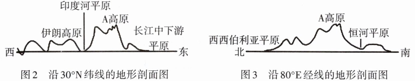 (2)从印度洋沿岸出发,沿80°E经线自南向北依次穿过了恒河平原、世界上最高的高原——A