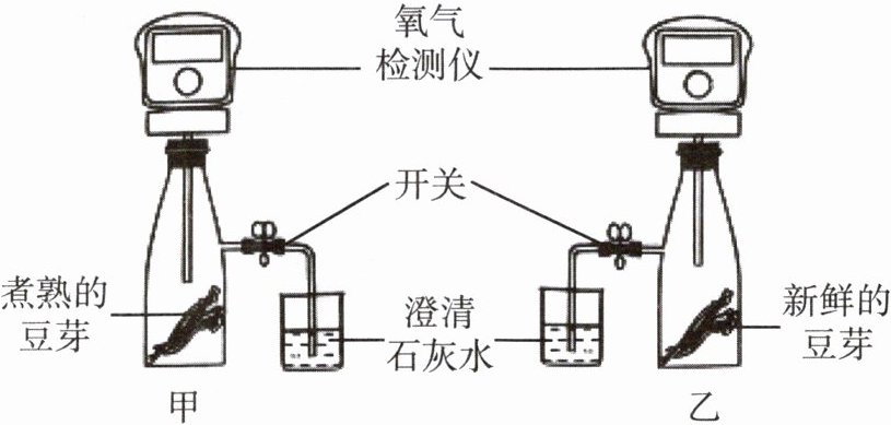 B.氧气检测仪上显示的数值,装置甲几乎不变,装置乙减小