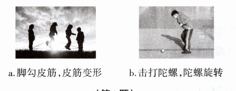 1. 如图所示,跳皮筋和打陀螺是很好的健身游戏,其中图