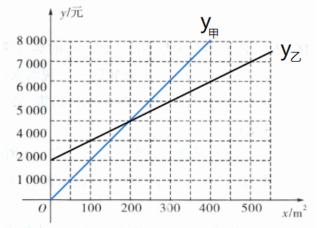 (3) 在下面平面直角坐标系中画出(1)(2)中的函数图象,并确定:若该小区粉刷面积约为$600m^{2}$,则选择哪家装修公司更合算?