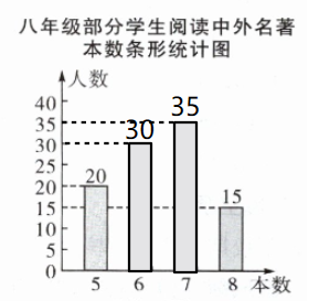 被调查学生2023年全年阅读中外名著本数的平均数为$\frac {5×20+6×30+7×35+8×15}{100}=$6.45.估计八年级全体学生2023年全年阅读中外名著的总本数约为$6.45×800=$5 160.