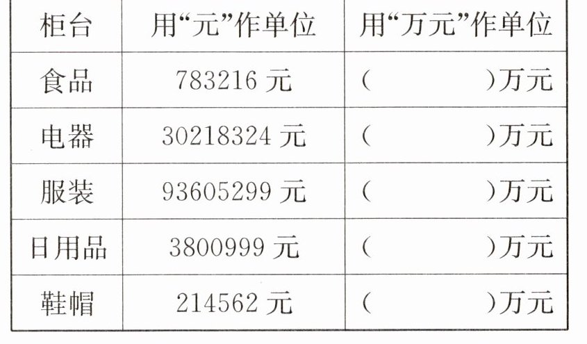 2. 下面是某商场几个柜台的全年营业额情况。省略“万”后面的尾数,先写出各柜台的营业额,再把这些营业额从小到大排列。