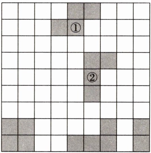 图形①先向左平移1格,再向下平移7格;图形②先向右平移2格,再向下平移3格。